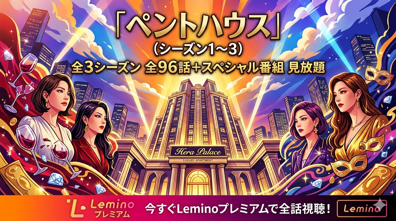 「ペントハウス(シーズン1〜3)」は、韓国で瞬間最高視聴率31.1%を記録した大ヒット復讐サスペンスドラマです。超高級タワーマンション「ヘラパレス」を舞台に、富裕層たちの欲望と裏切り、壮絶な愛憎劇が全3シーズンにわたって描かれます。Leminoプレミアムなら全96話+スペシャル番組がすべて見放題で視聴できます。