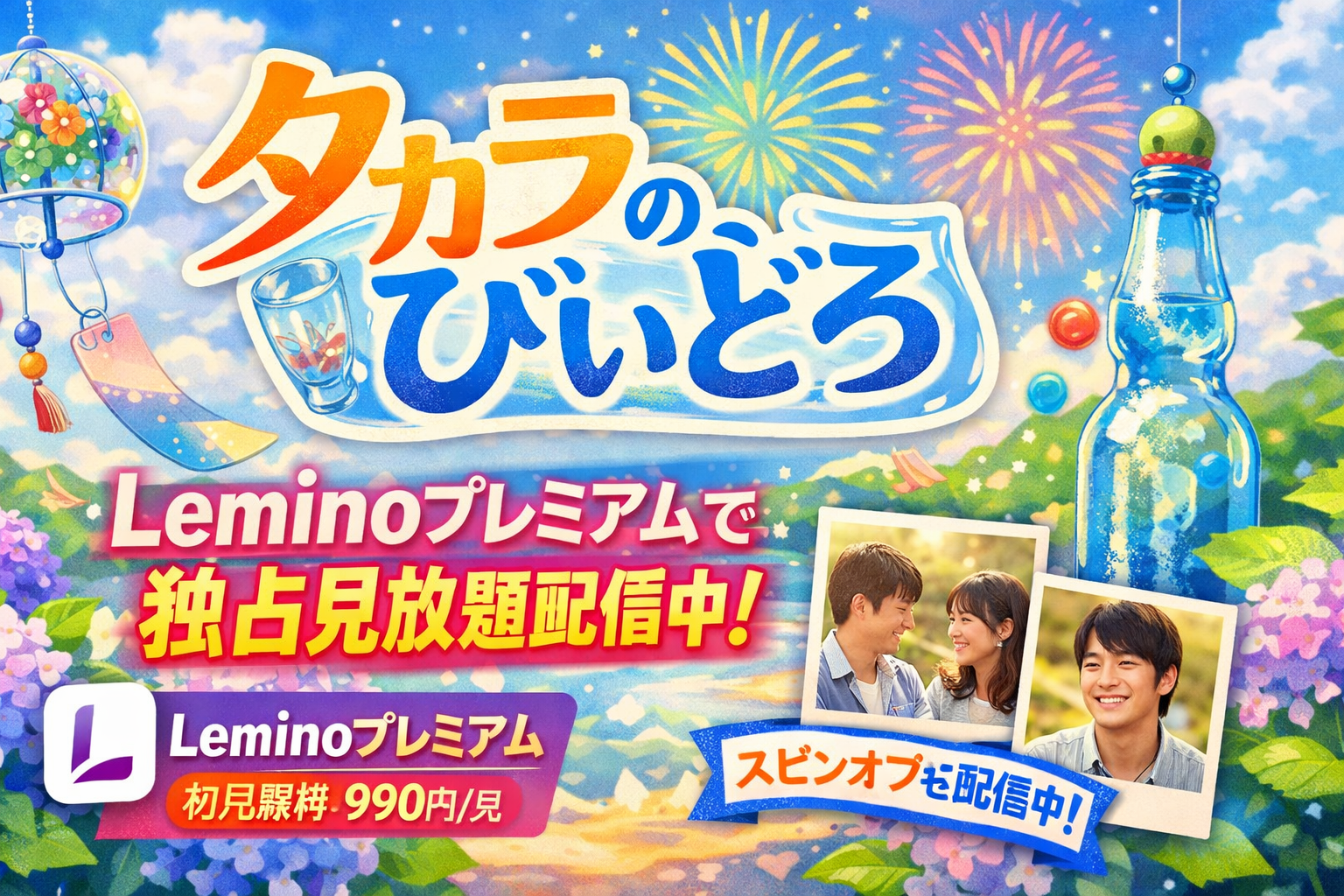 2026年2月25日時点で、「タカラのびいどろ」はLeminoプレミアムにて本編全10話が見放題で配信されています。加えて、スピンオフ「大進、ハタチになる。」(前編・後編)はLeminoでしか視聴できない独占コンテンツです。2025年1月以降、U-NEXTやAmazon Prime Video、Huluなどでも本編の配信が開始されましたが、スピンオフまで含めてすべて楽しめるのはLeminoだけという点が大きな強みです。Leminoプレミアムは初月無料で試せるため、まずは気軽に登録して全話一気見するのがおすすめです。